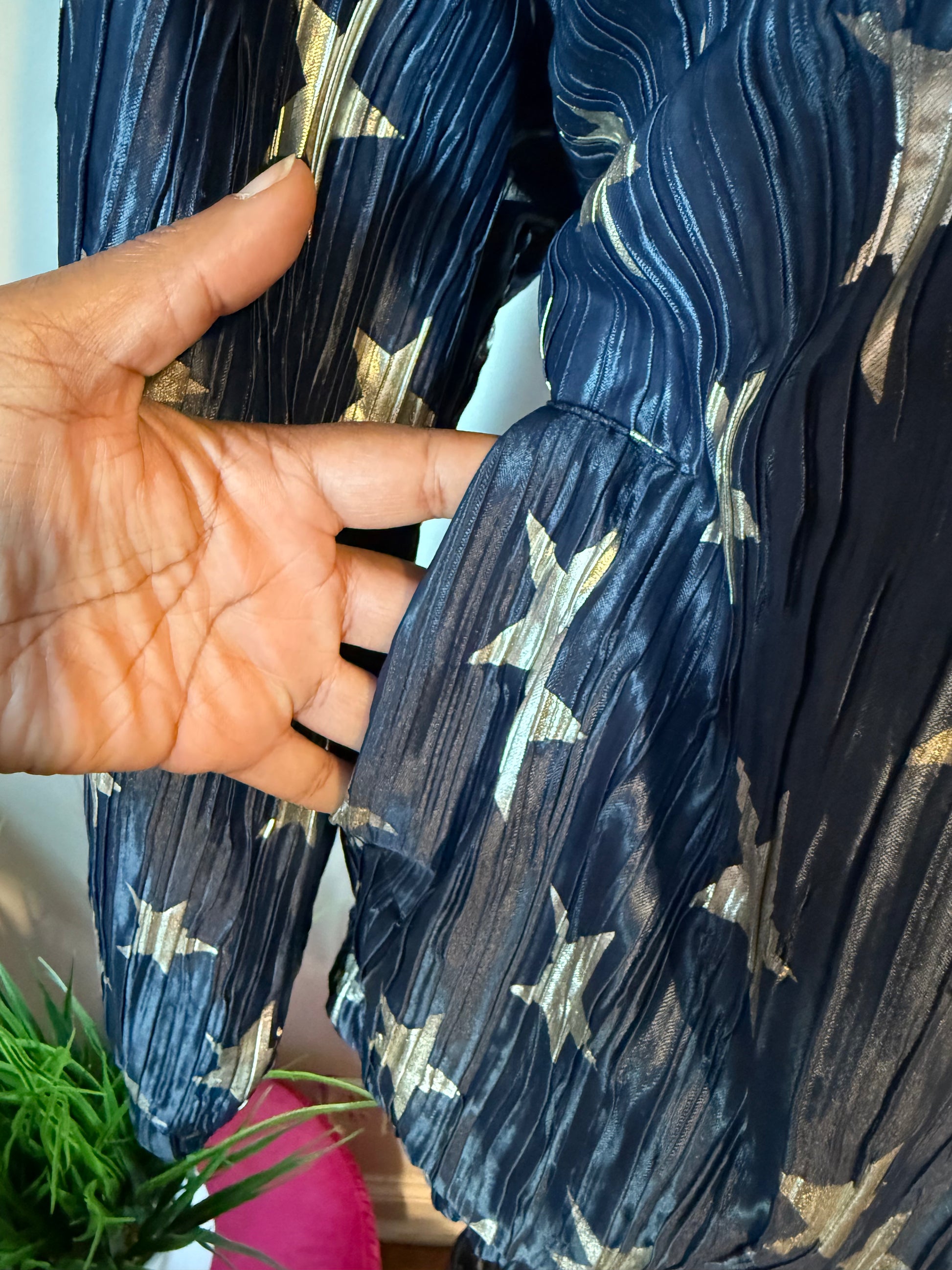 Navy blue and metallic silver star design